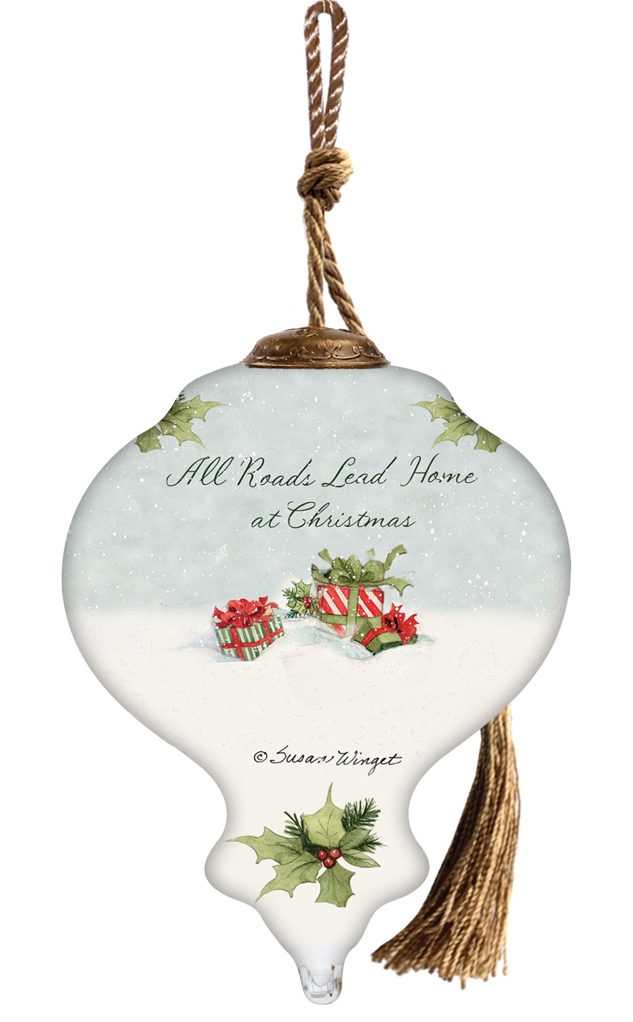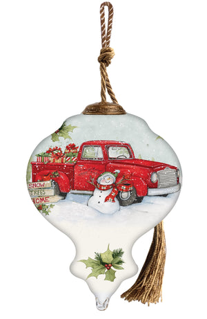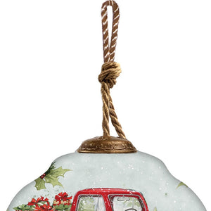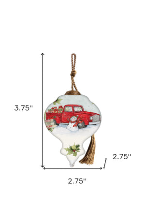 Red Truck Hand Painted Red White And Green Glass Finial Ornament
