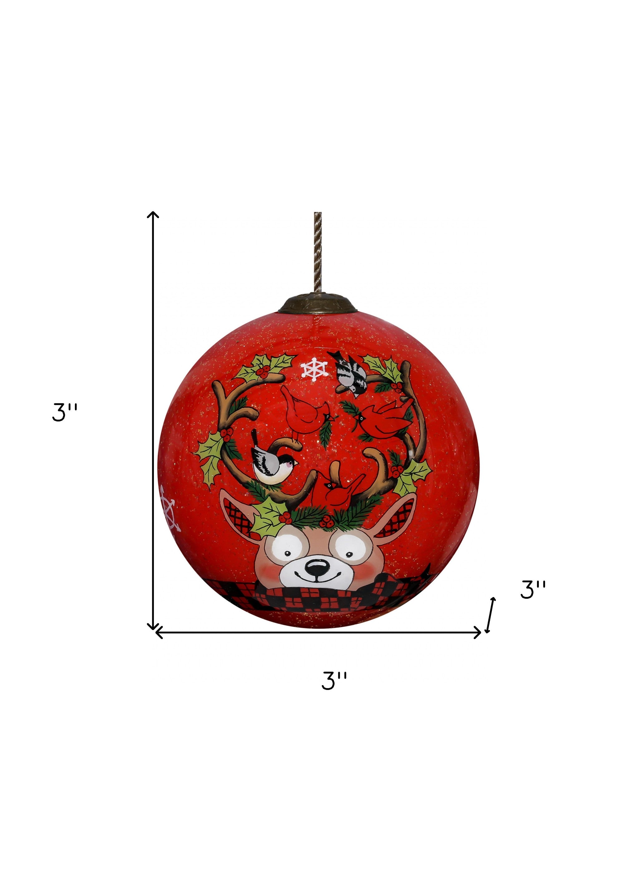 Reindeer with Plaids and Cardinals Hand Painted Mouth Blown Glass Ornament