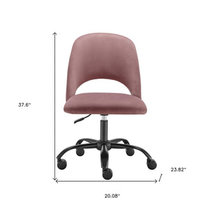 Rose and Black Steel and Velvet Adjustable Swivel Rolling Conference Office Chair