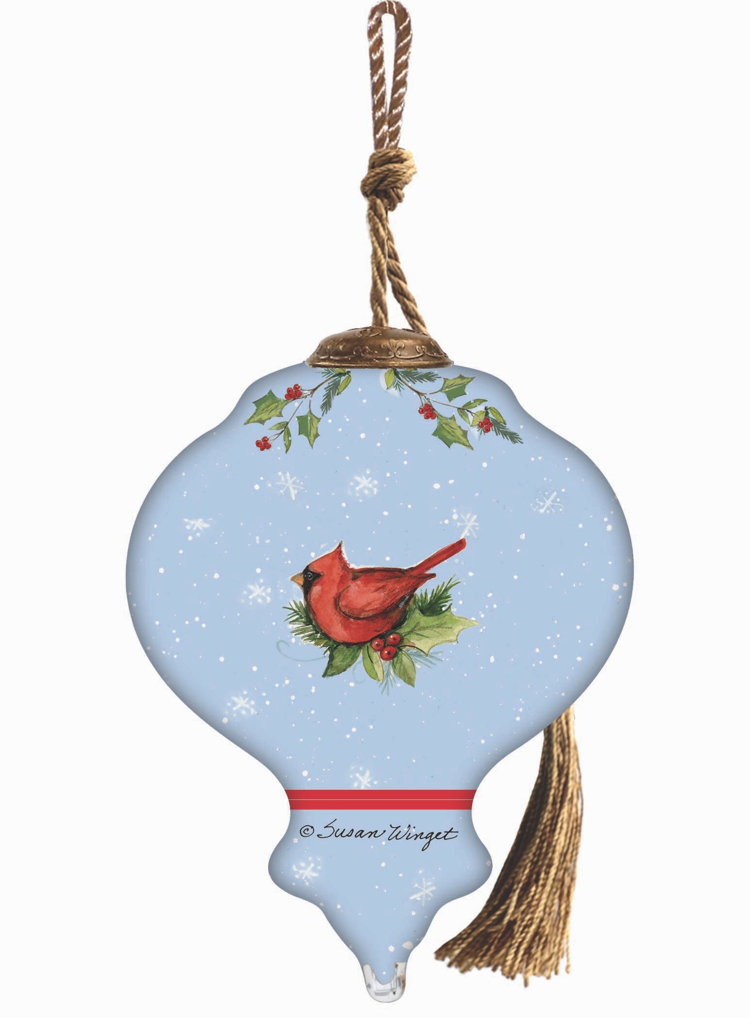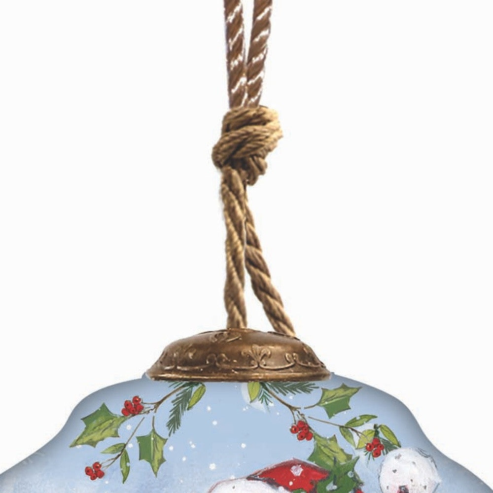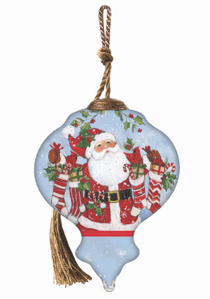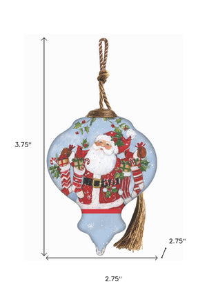 Santa with Stockings Hand Painted Blue White And Red Glass Finial Ornament