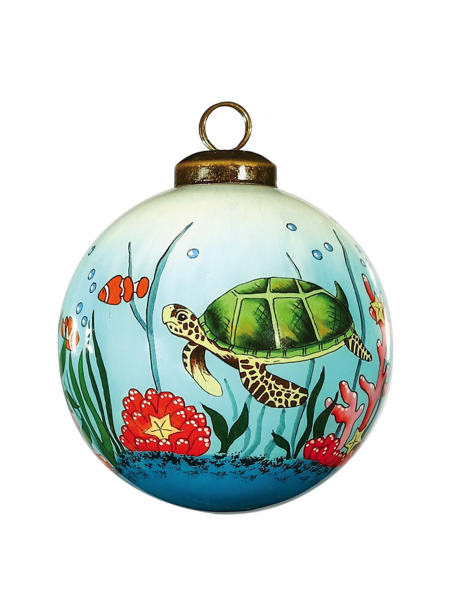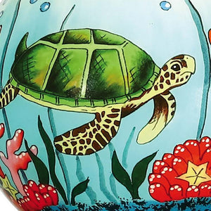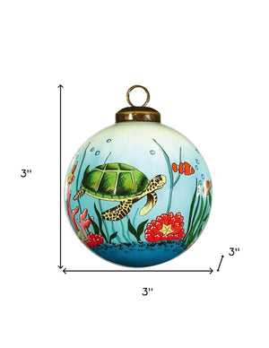 Sea Turtle Hand Painted Green Red And Blue Glass Ball Ornament