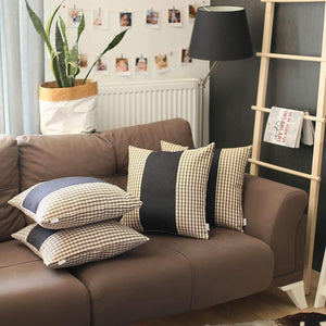 Set Of Four 18" X 18" Brown And Black Houndstooth Zippered Handmade Polyester Throw Pillow