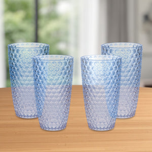 Set of Four Blue Geometric Acrylic Stemless Highball Glass