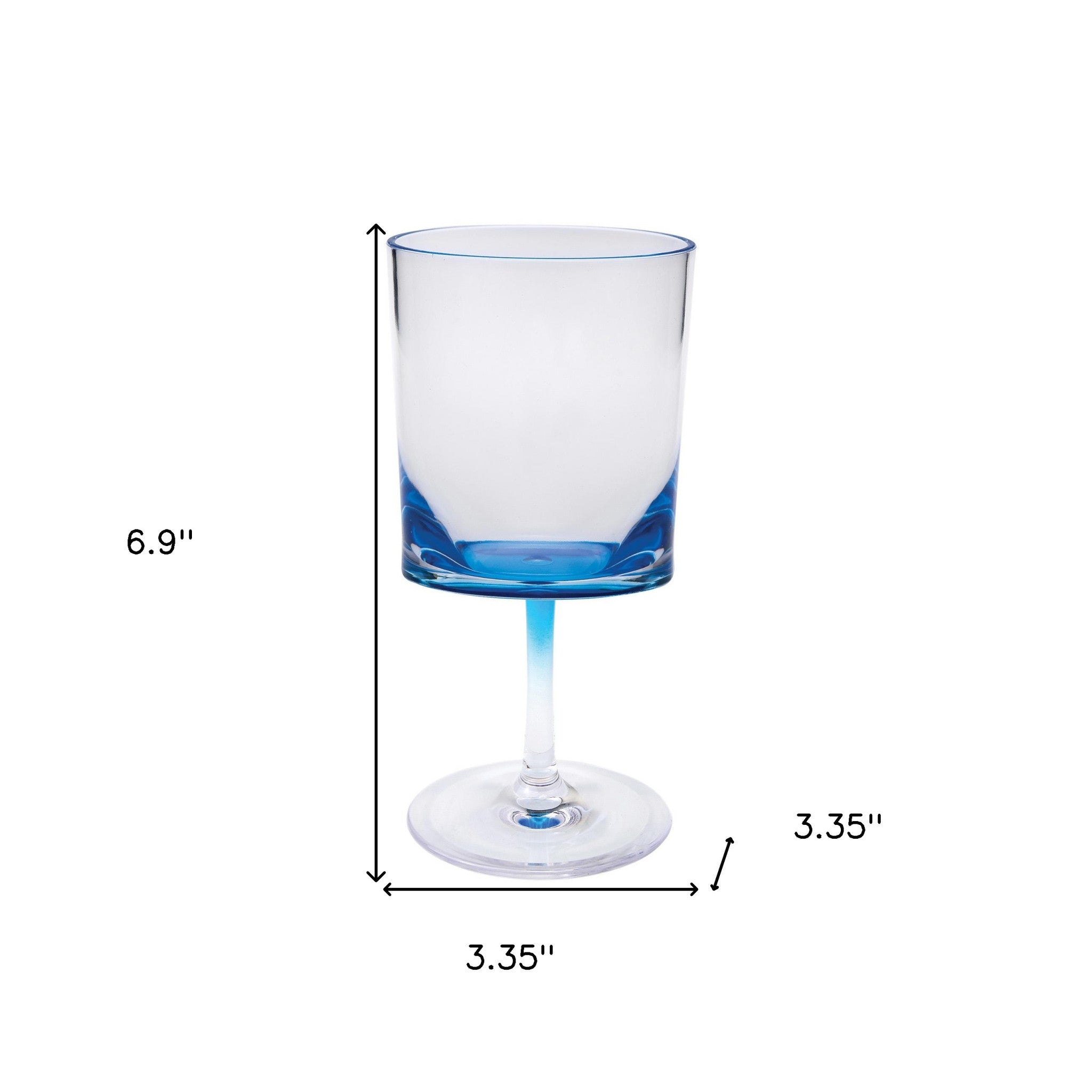 Set of Four Clear and Blue Acrylic Stemmed All Purpose Wine Glass