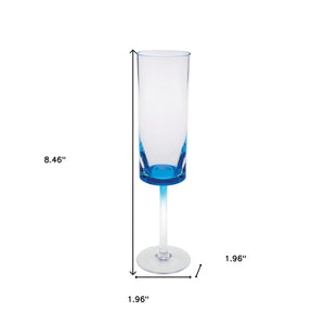 Set of Four Clear and Blue Acrylic Stemmed Flutes