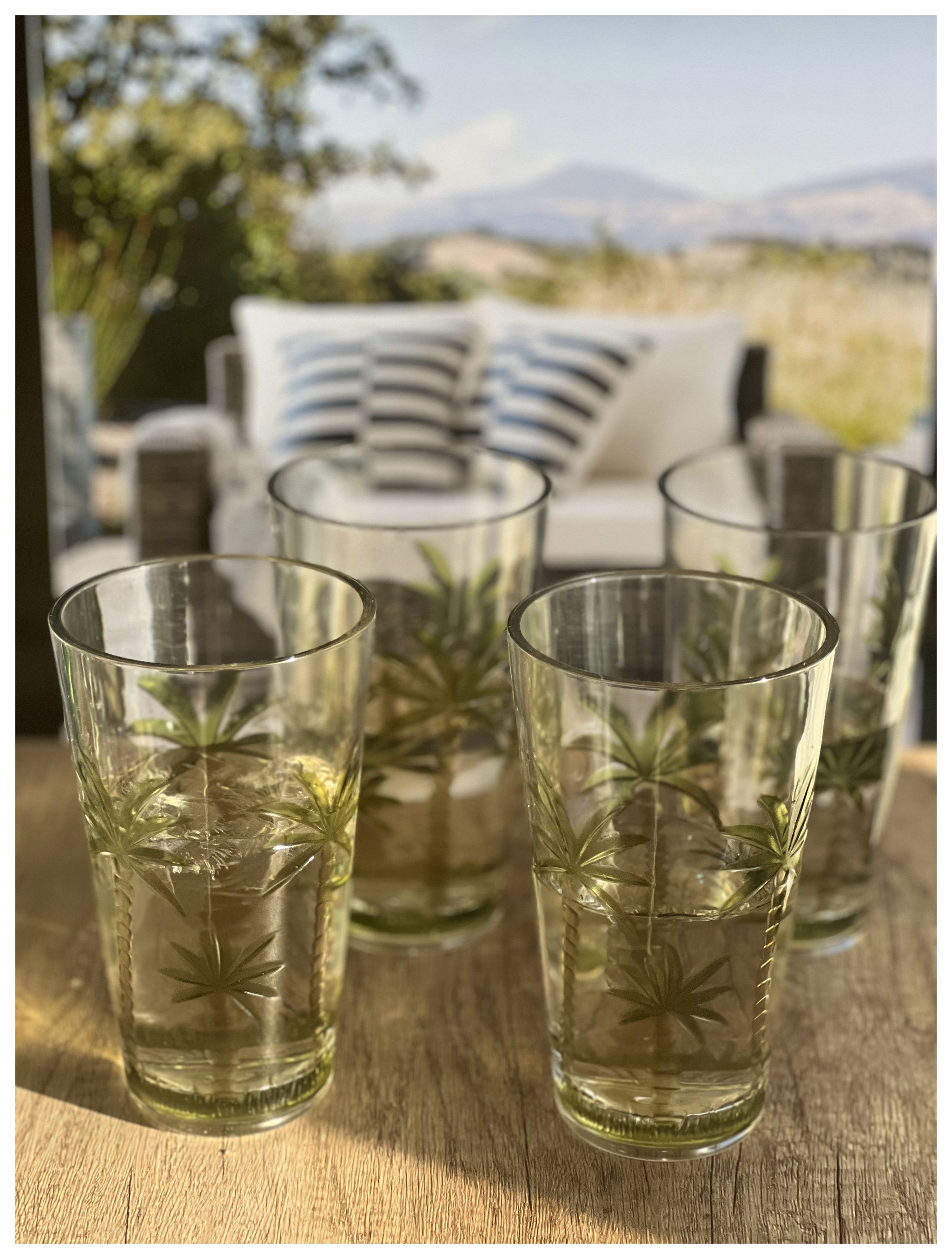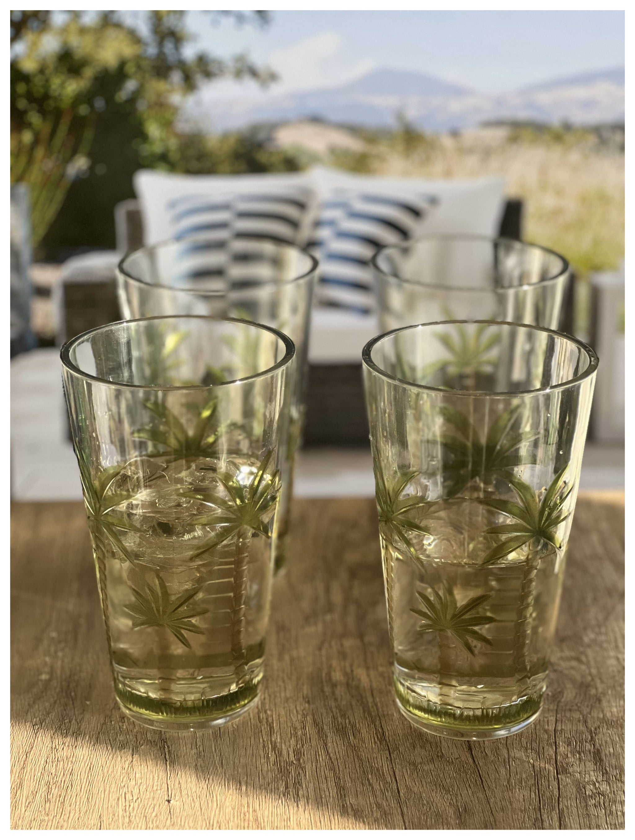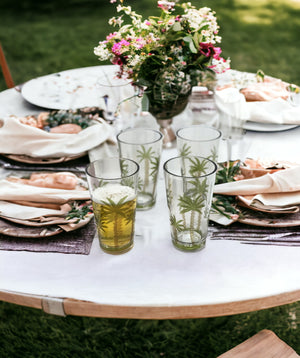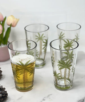 Set of Four Clear and Green Palm Tree Acrylic Highball Glasses