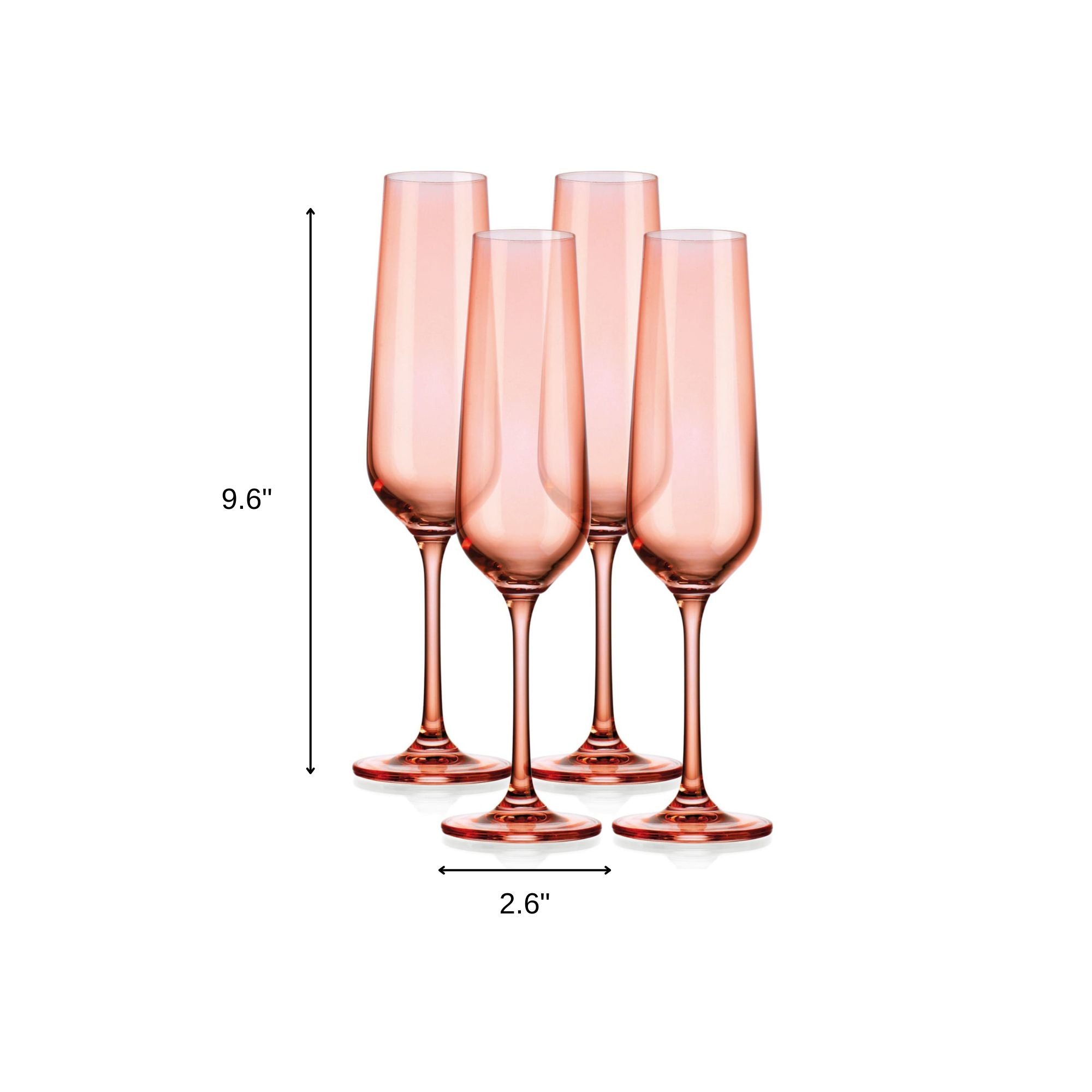 Set of Four Coral Crystal Narrow Stemmed Champagne Flutes