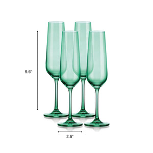 Set of Four Green Crystal Narrowing Shape Stemmed Flute