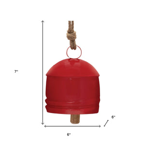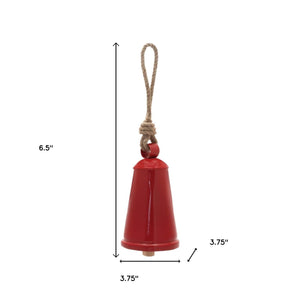 Set of Four Red And Natural Holiday Bell Shaped Ornaments