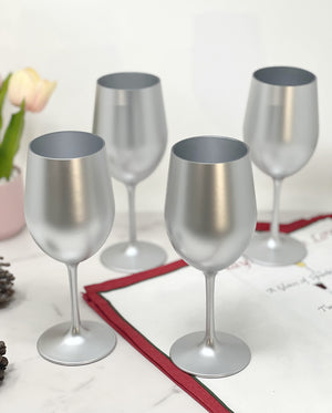 Set of Four Silver Acrylic Stemmed All Purpose Wine Glass