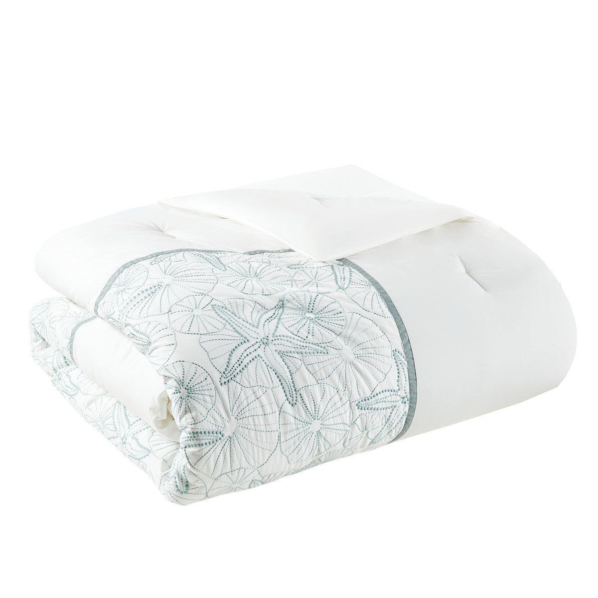 Set of Four White And Aqua Full Ring Stitch Sham And Comforter