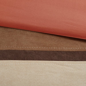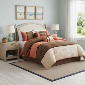 Set of Seven Coral And Brown Striped King Ring Stitch Polyester Sham And Comforter