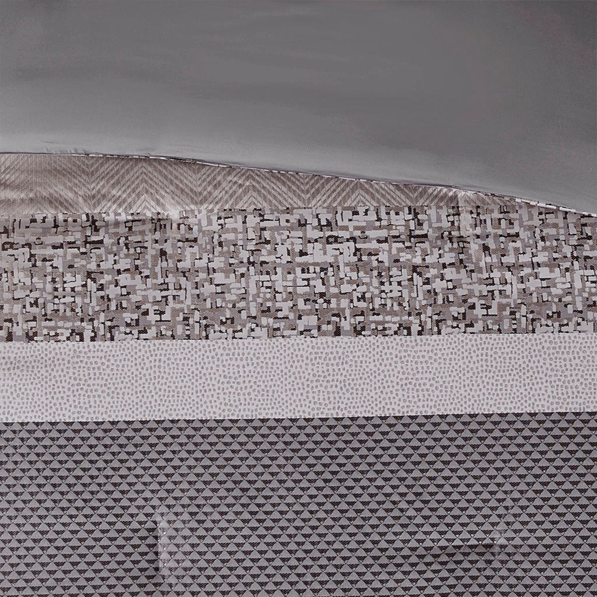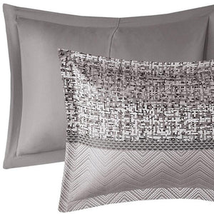 Set of Seven Gray And Taupe Striped Queen Ring Stitch Polyester Sham And Comforter