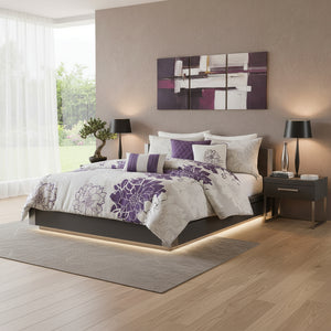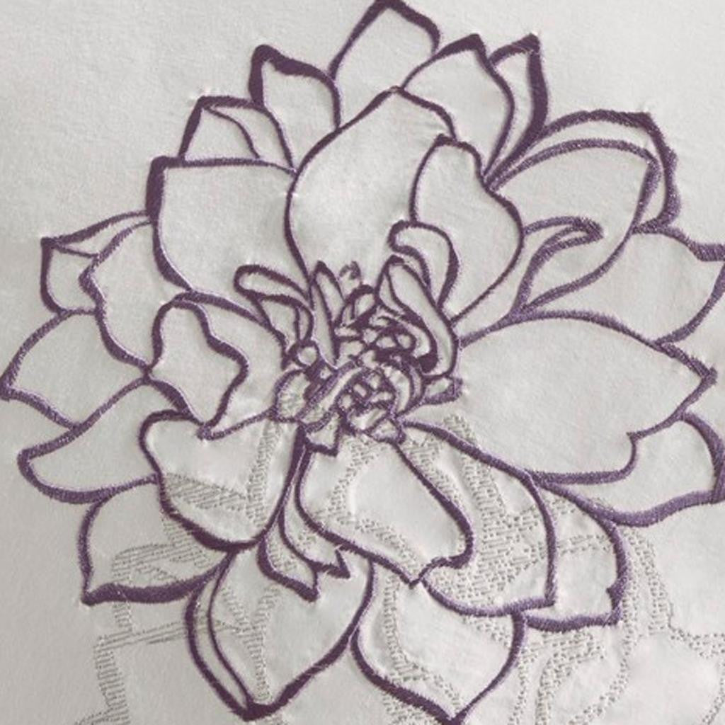 Set of Seven Purple And White Floral Queen Ring Stitch Sham And Comforter