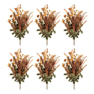 Set of Six 14" Orange Brown And Green Artificial Foliage