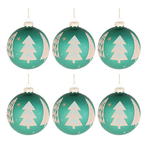 Set of Six Green And White Glass Ball Ornaments