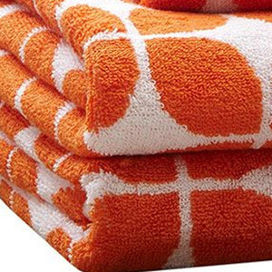 Set of Six Orange And White Cotton Geometric Jacquard Towel Set