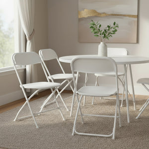 Set of Six White Metal Outdoor Folding Stacking Dining Chairs