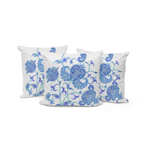 Set of Three 16" Blue and White Botanical Indoor Outdoor Throw Pillow Cover and Insert