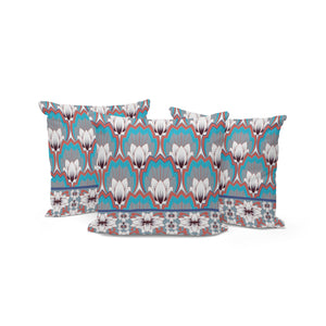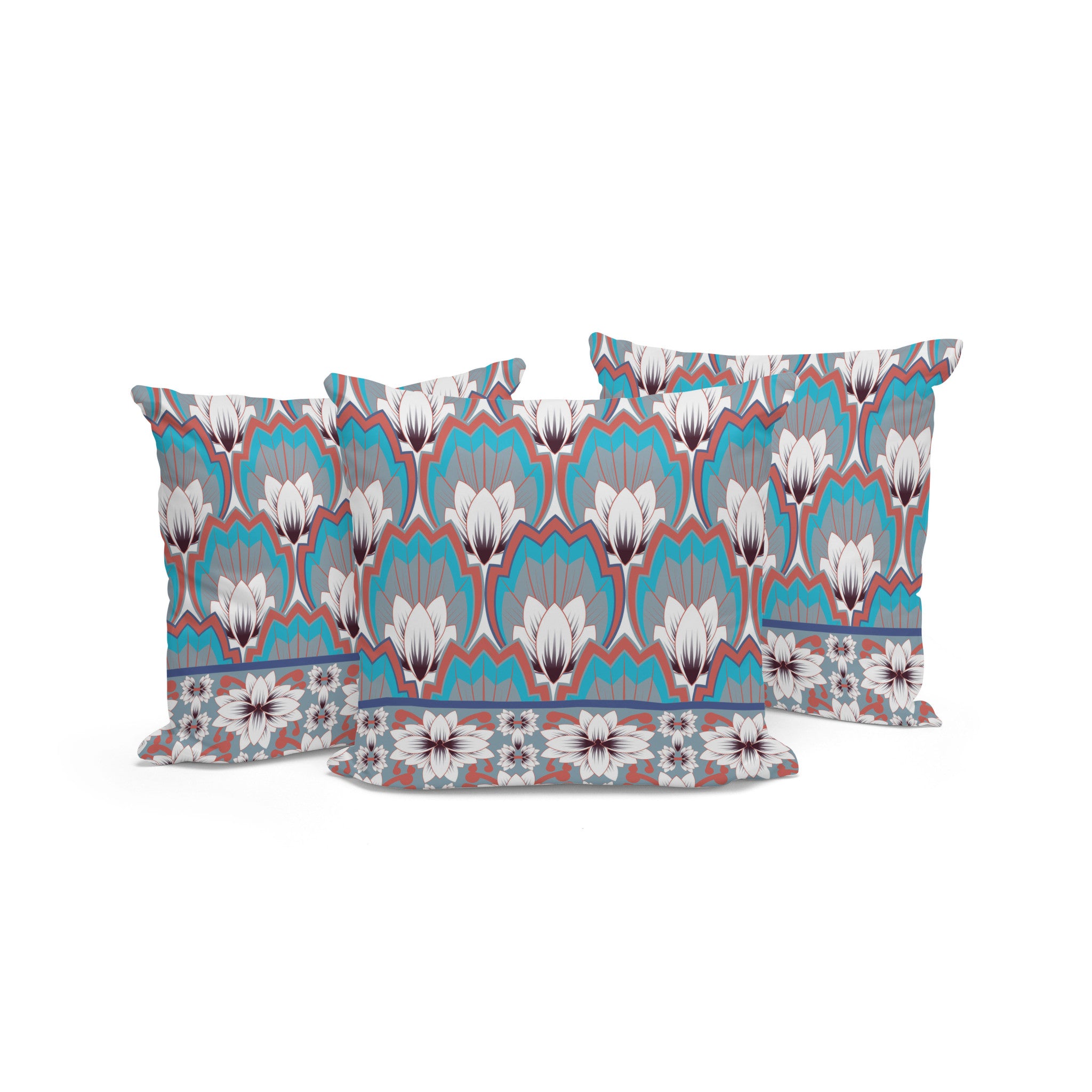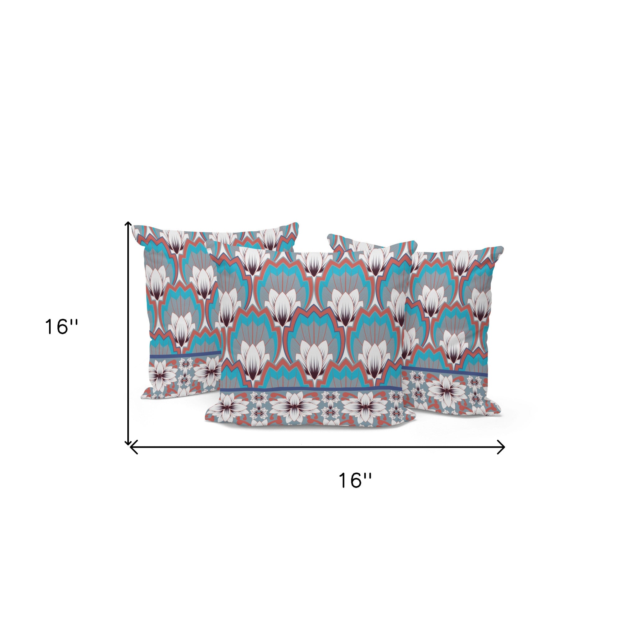 Set of Three 16" Gray and Orange Botanical Indoor Outdoor Throw Pillow Cover and Insert