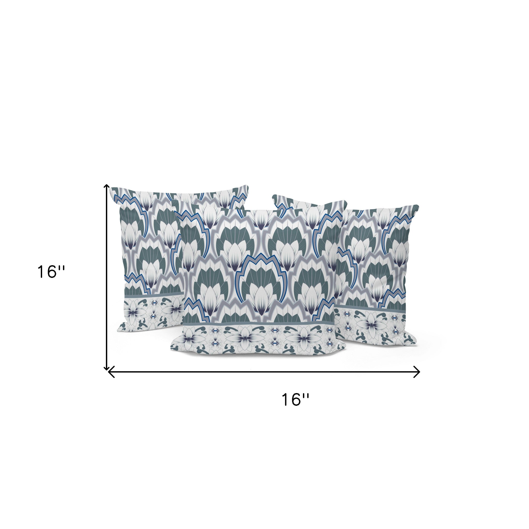 Set of Three 16" Gray and White Botanical Indoor Outdoor Throw Pillow Cover and Insert