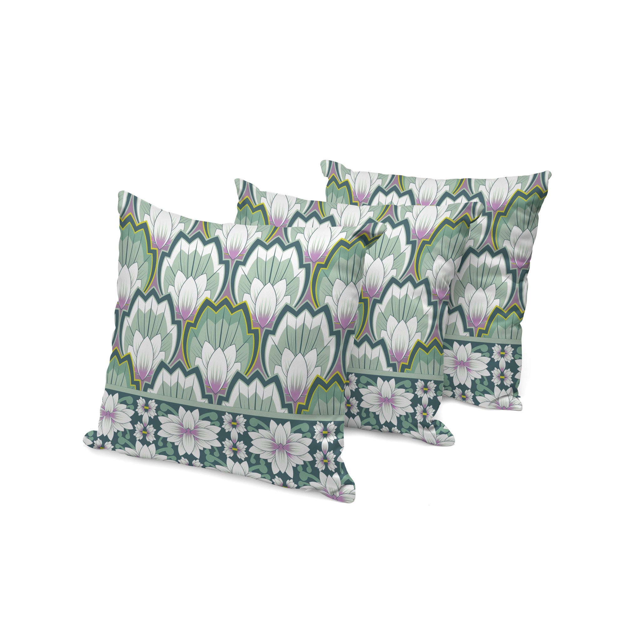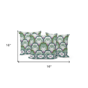 Set of Three 16" Green and Pink Botanical Indoor Outdoor Throw Pillow Cover and Insert
