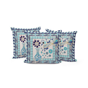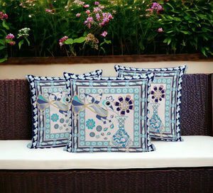 Set of Three 16" X 16" Beige and Black Peacock Blown Seam Floral Indoor Outdoor Throw Pillow