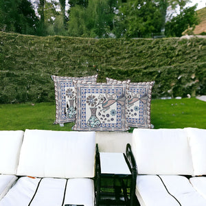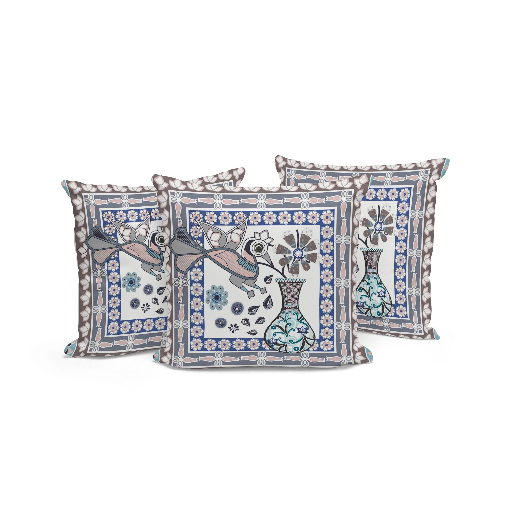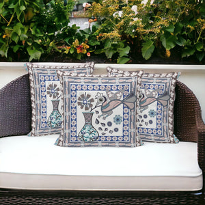 Set of Three 16" X 16" Beige and Gray Peacock Blown Seam Floral Indoor Outdoor Throw Pillow
