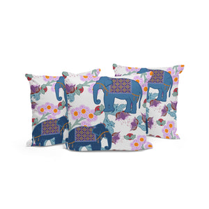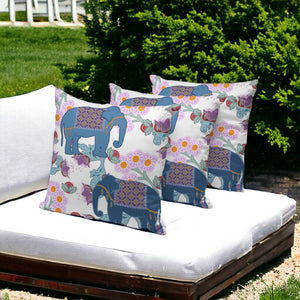 Set of Three 16" X 16" Blue and Gray Elephant Blown Seam Floral Indoor Outdoor Throw Pillow