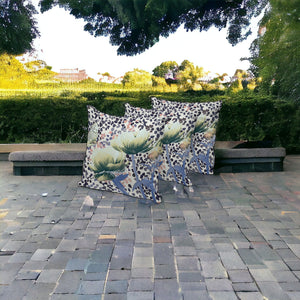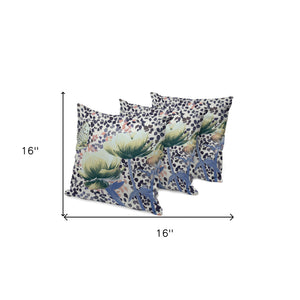 Set of Three 16" X 16" Blue and Green Butterfly Blown Seam Floral Indoor Outdoor Throw Pillow