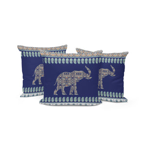 Set of Three 16" X 16" Blue and Green Elephant Blown Seam Paisley Indoor Outdoor Throw Pillow