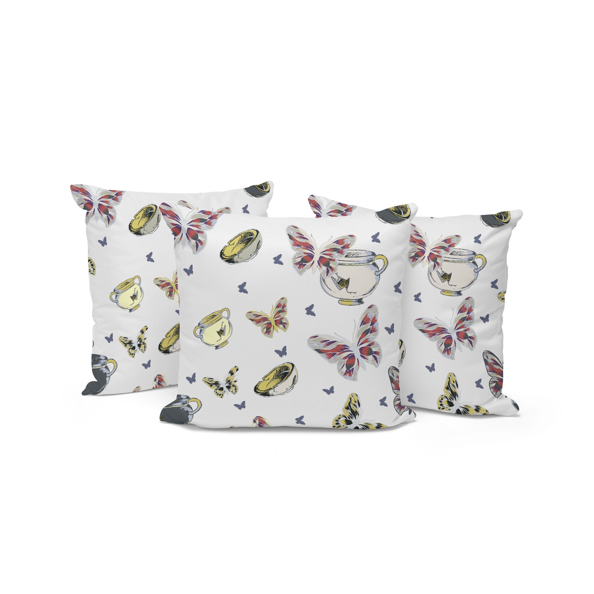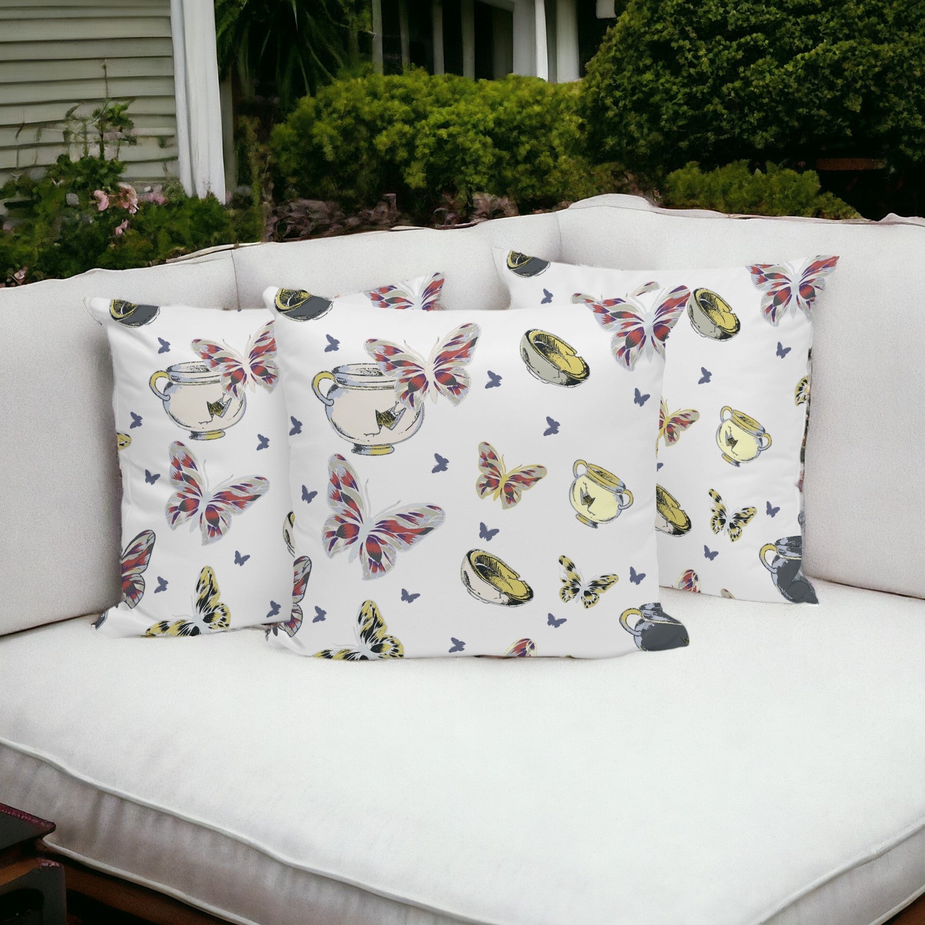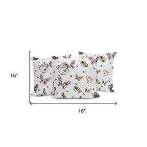 Set of Three 16" X 16" Blue and White Butterfly Blown Seam Animal Print Indoor Outdoor Throw Pillow