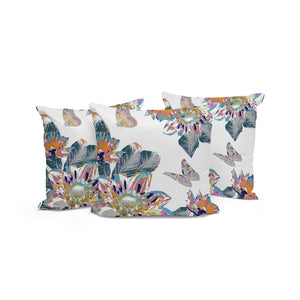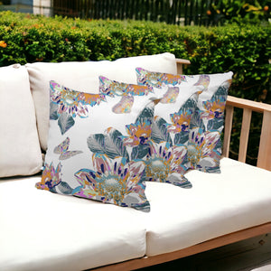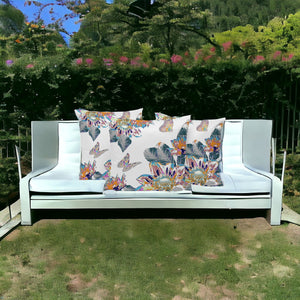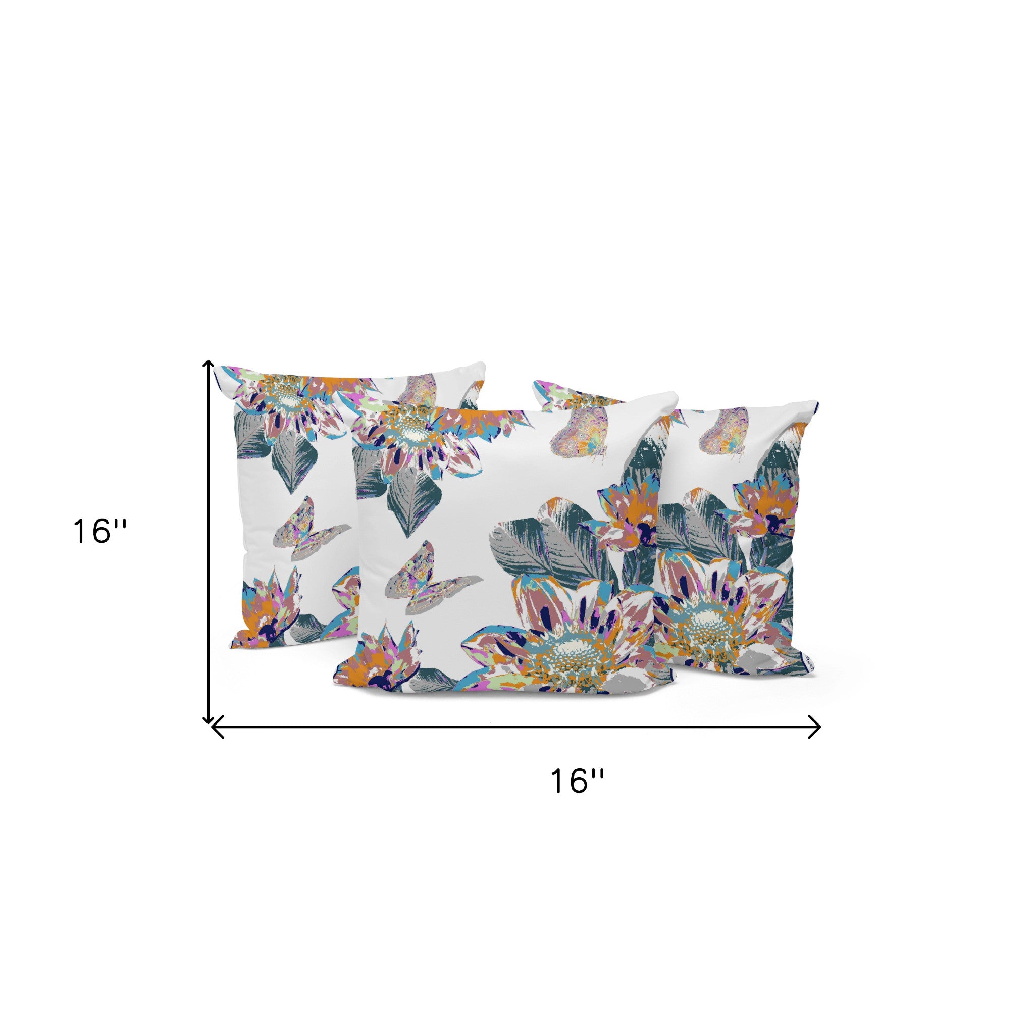 Set of Three 16" X 16" Pink and White Butterfly Blown Seam Floral Indoor Outdoor Throw Pillow