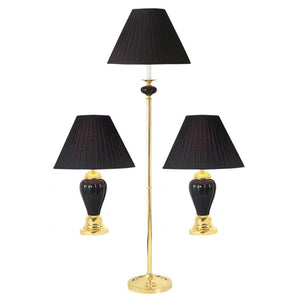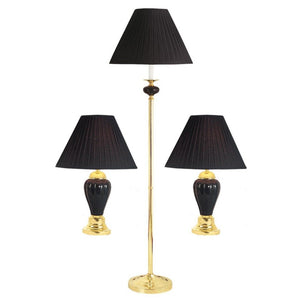 Set Of Three 64" Gold Ceramic Bedside Floor and Table Lamp Set With Black Empire Shade