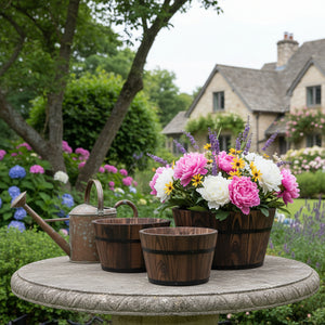 Set of Three Brown Solid Wood Round Pot Planter