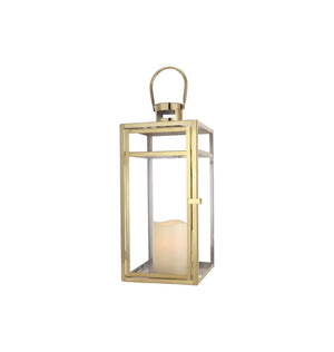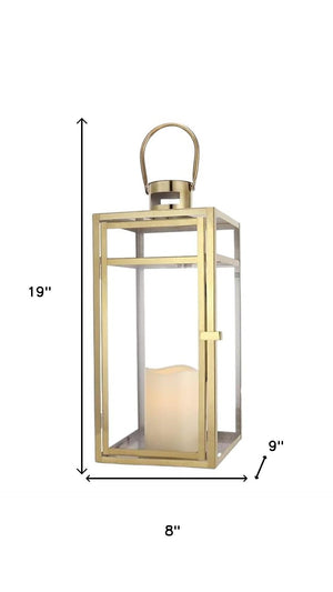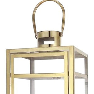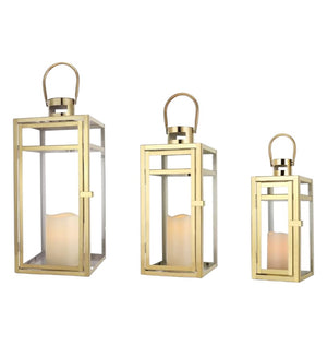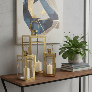 Set of Three Clear And Gold Glass And Stainless Steel Tabletop Lantern Candle Holders