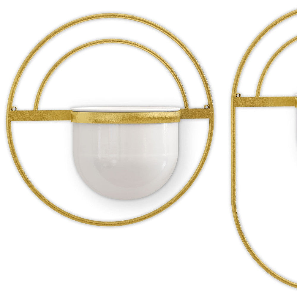 Set of Three Gold And White Metal 10 Ounce Wall Planters