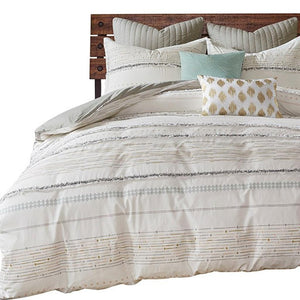 Set of Three Off White And Gray Striped King Ring Stitch Sham And Comforter