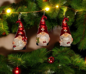 Set of Three Red and White Santa Gnome LED Light Up Christmas Ornaments