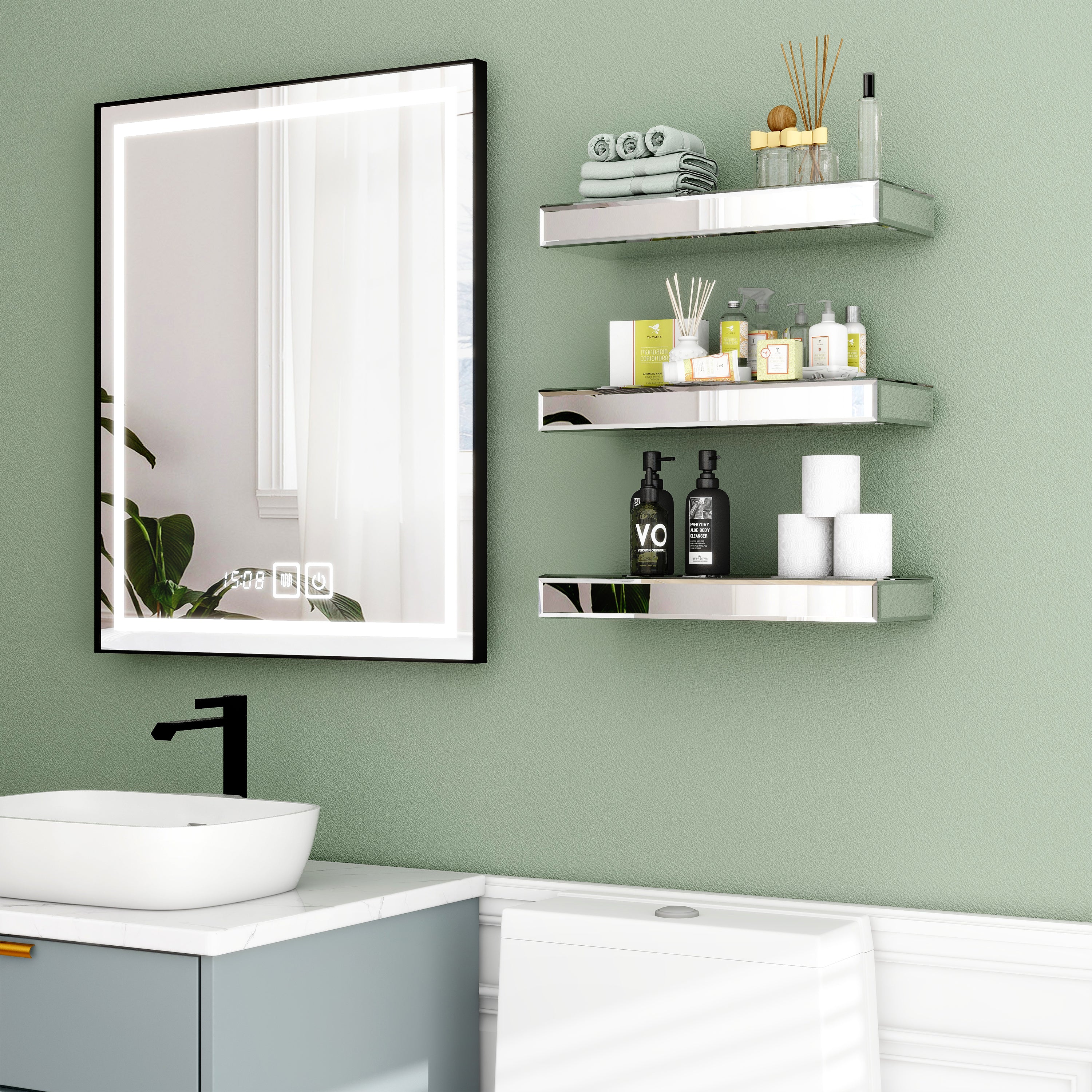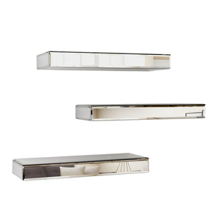Set Of Three Silver Glass Wall Mounted Floating Shelf