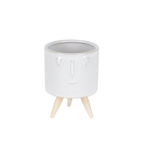 Set of Three White Porcelain 1 Ounce Round Funny Face Pot Planters With Stands