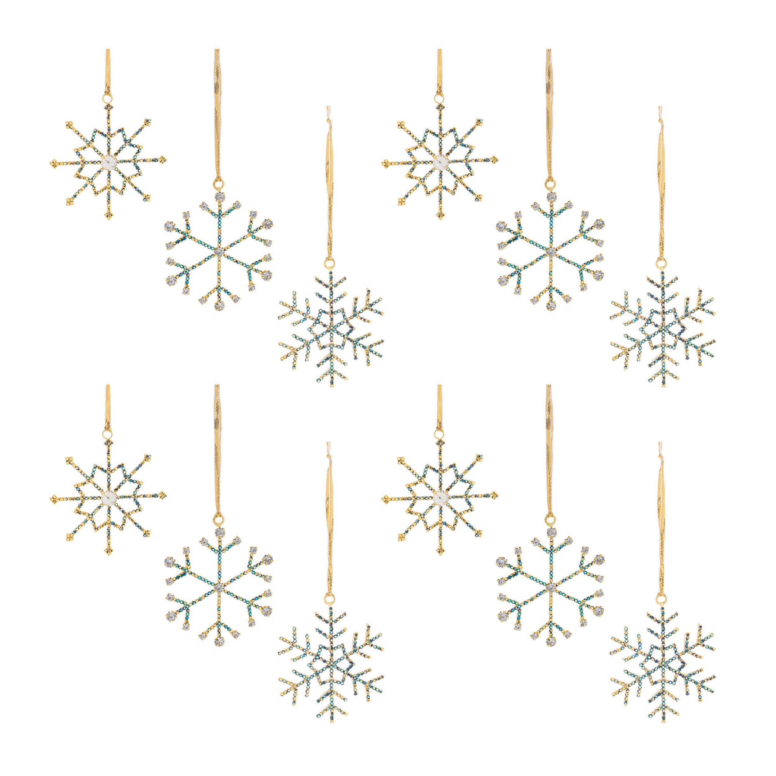 Set of Twelve Blue And Gold Iron Hanging Figurine Ornaments