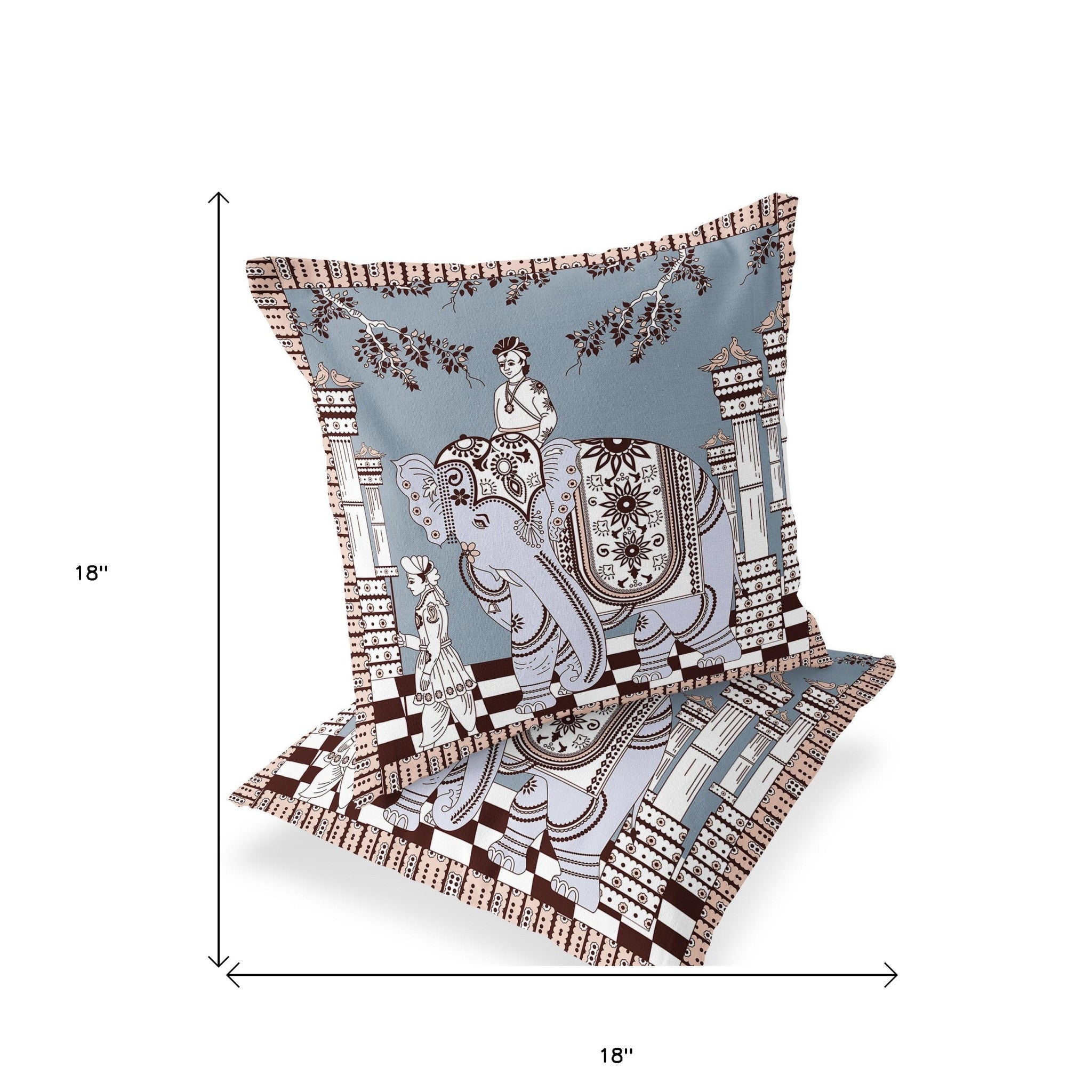 Set of Two 18" Blue Elephant Indoor Outdoor Throw Pillow Cover and Insert
