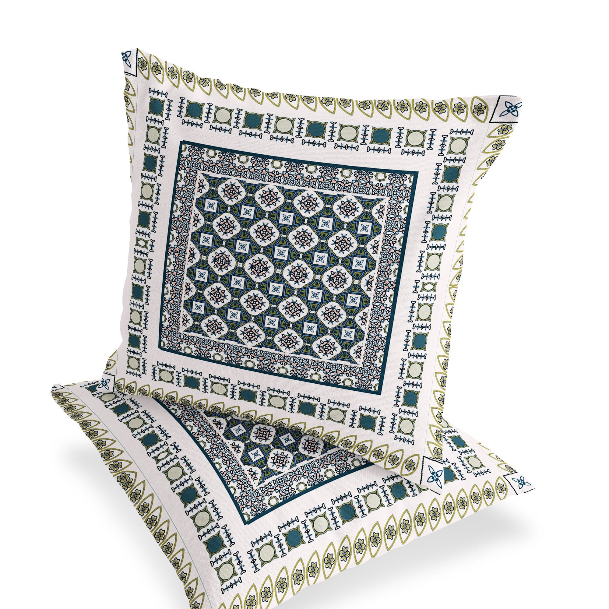 Set of Two 18" White Botanical Indoor Outdoor Throw Pillow Cover and Insert