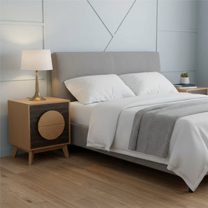 Set of Two 21" Oak And Dark Brown Solid Wood Square Two Drawer Nightstands