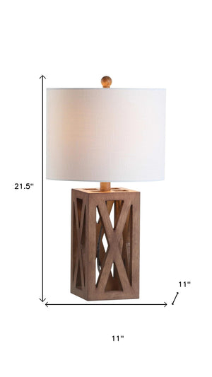 Set of Two 22" Brown Table Lamps LED With Drum Shades