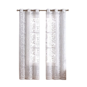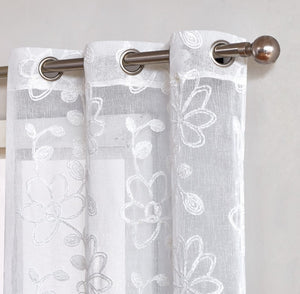 Set of Two 84" White Floral Embroidered Window Panels