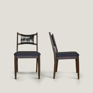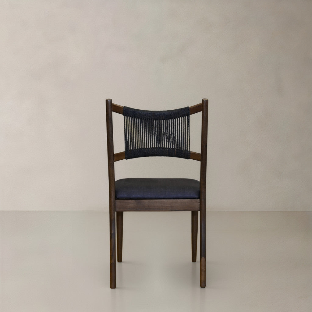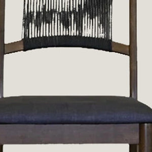 Set of Two Black and Walnut Fabric and Wood Partially Open Back Dining Side Chairs