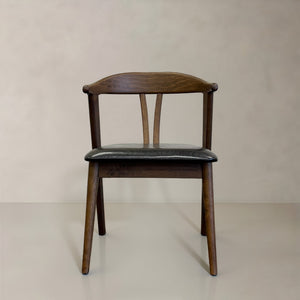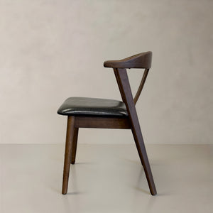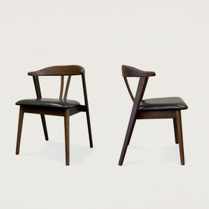 Set of Two Black and Walnut Faux Leather and Solid Wood Wishbone Back Dining Side Chairs