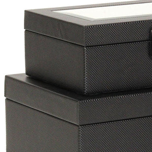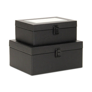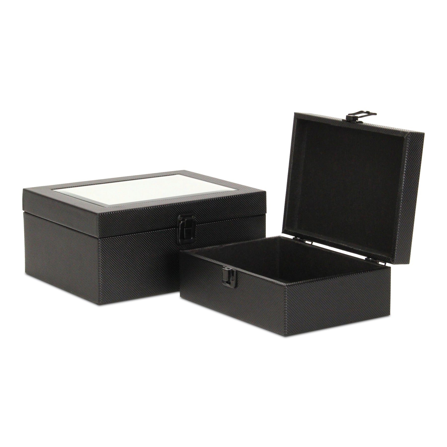 Set Of Two Black Faux Leather And Mirrored Glass Jewelry Boxes